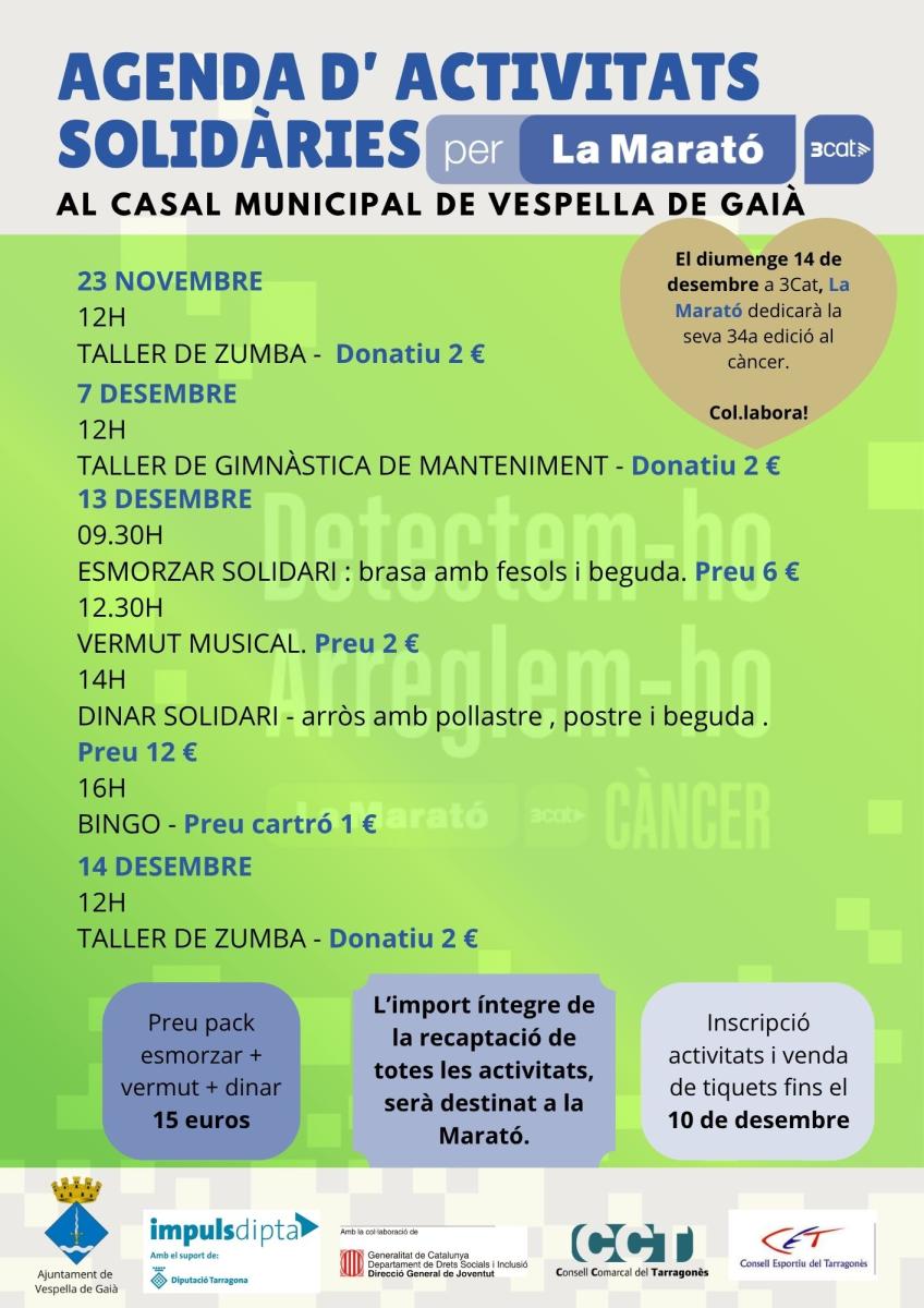 Us animem a sumar-vos a les activitats solidàries per la Marató de 3Cat que hem organitzat a Vespella de Gaià !