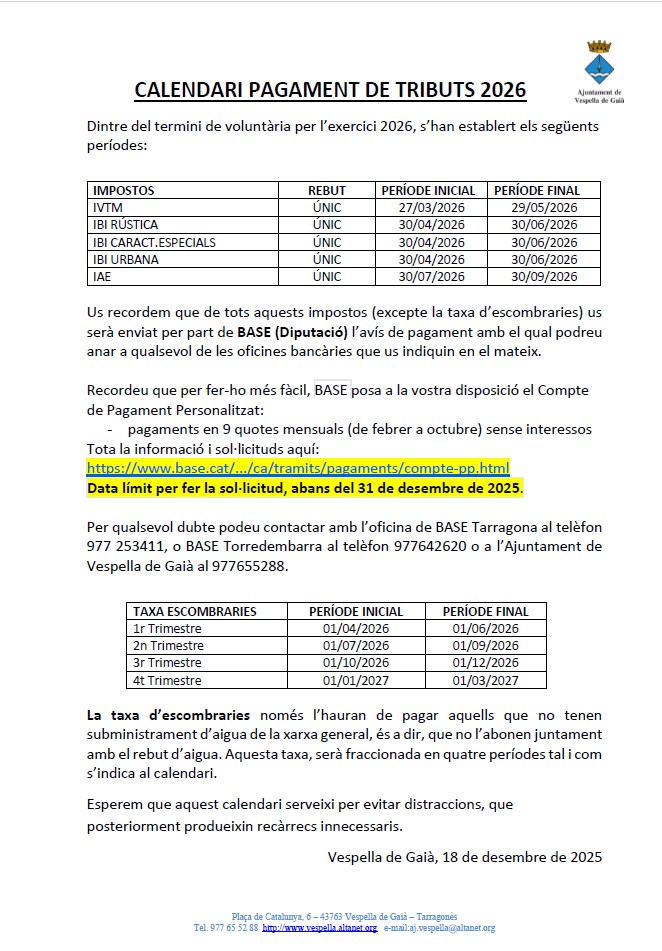 - Calendari del Contribuent